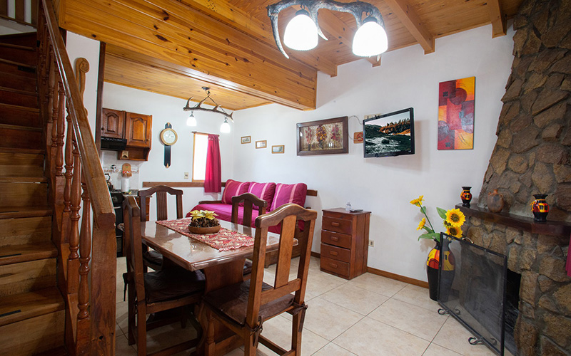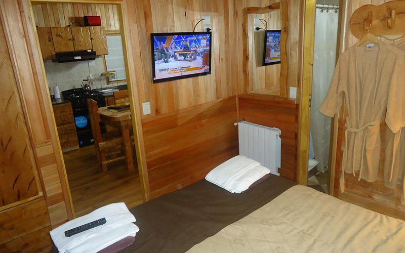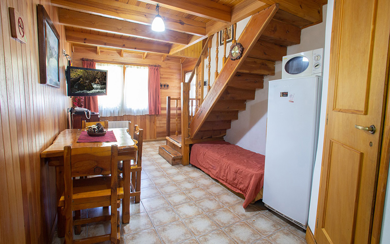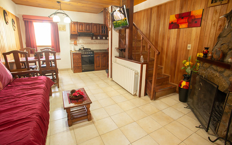 2º Piso: 1 Planta: 1 Dormitorio Matrimonial con TV LCD 32", y Baño Completo en SUITE, sin bañera, Con Ducha Tipo "Escocesa", Living - Comedor pequeño con TV LCD 32" y 1 Cama Sommier de resortes), Cocina Completa,