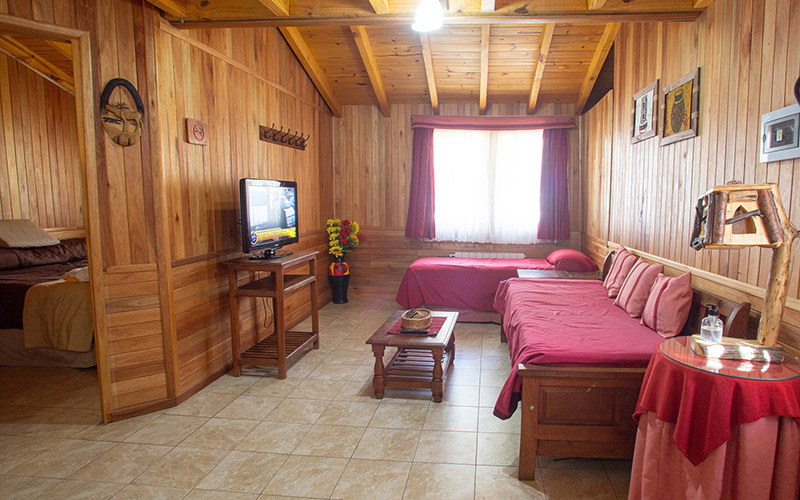 1 Piso: 1 Planta: 1 Dormitorio Matrimonial con TV LCD 32", Cama king Size de 2 x 2, Living - Comedor, TV LCD 32", 2 Camas (1 sofá + 1 Sommier de resortes), Cocina Completa, 1 Baño Completo con Hidromasaje.