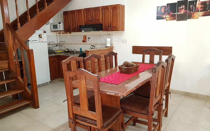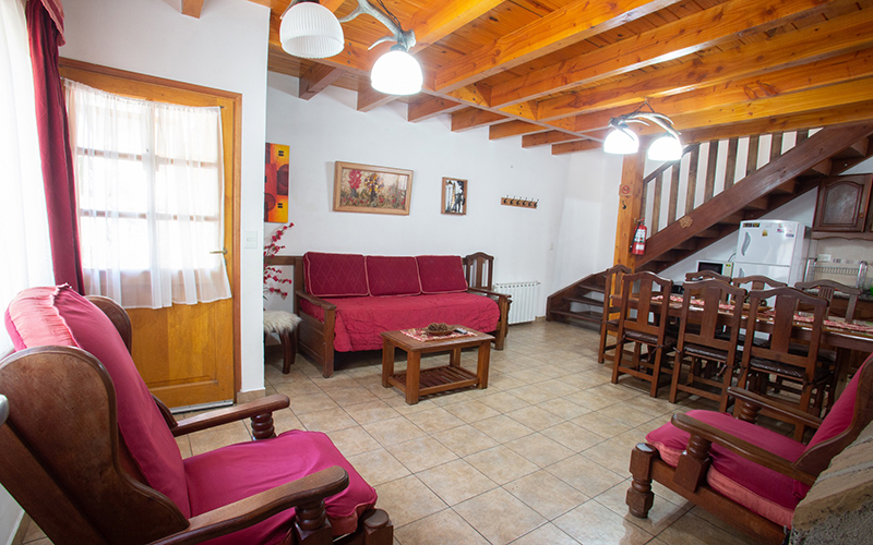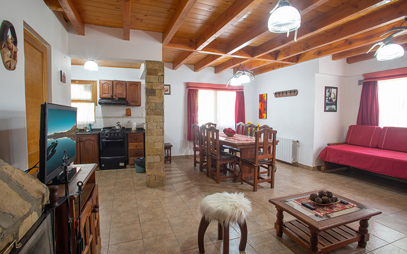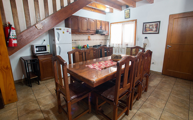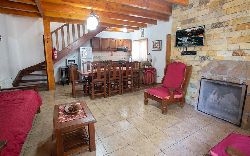 Planta Baja: Living, Comedor con Hogar a Leña, TV LED 32", 1 Sofá-Cama, Cocina Completa, 1 Dormitorio Matrimonial con TV LCD 32 con Cama King Size de 2x1.80 y toillete con ducha en Suite, 1 Dormitorio Triple con TV, 1 Baño Completo con Hidromasaje