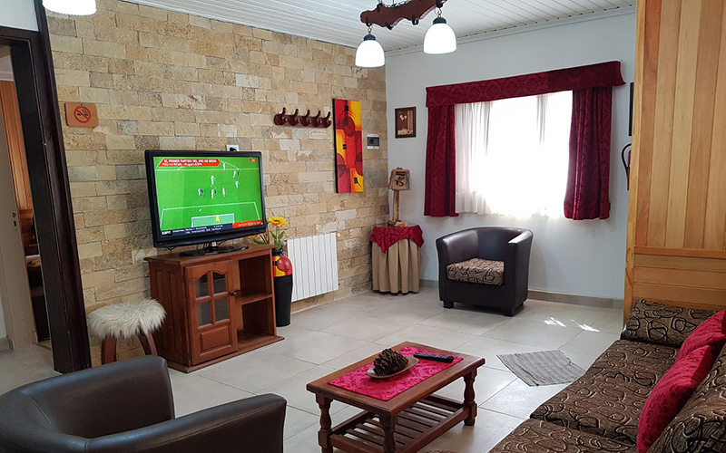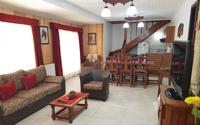 Planta Baja: Amplio Living, Comedor con Hogar a Leña, TV LED 32", 1 Sofá-Cama, Cocina Completa y 1 Baño completo, 1 Dormitorio Matrimonial o Doble con TV.